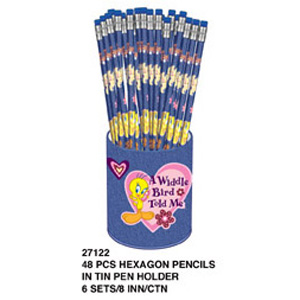 48PCS HEXAGON PENC. IN TIN HOLDER TWEETY