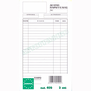 ΔΕΛΤΙΟ ΠΑΡΑΓΓΕΛΙΑΣ ΕΣΤΙΑΤΟΡΙΟΥ