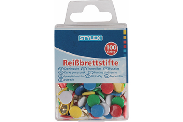 Drawing pins, metal, coloured, 100 pcs.Prices, Promotions, Specifications, Availability and Offers may change without any notice. Pricing, typographic, or photographic errors may occur.