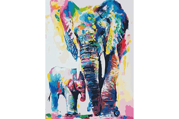 Paint by numbers Figured'Art Elephants Watercolor 40x50cm Without frame