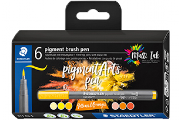 pigment brush pen Yellows & Ora. 6pcsPrices, Promotions, Specifications, Availability and Offers may change without any notice. Pricing, typographic, or photographic errors may occur.