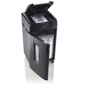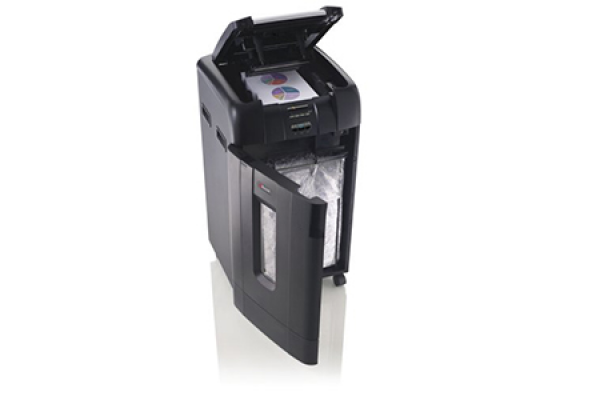 FEATURES & BENEFITS Thermal overload protection and cool down indicator Designed for large office use** Automated shredding up to 750 sheets in one go (staples & paperclips)** 12 sheet manual bypass slot** 115L pull out frame with door & viewing window** Bin full detection system** Thermal overload protection and cool down indicator Door open and bin full indicator EXTENDED FEATURES & BENEFITS Award-Winning Technology** Stack, shut, done. Auto Feed means no more standing at the shredder. The Rexel Auto+ 500X shreds 500 sheets at the touch of a button, saving you over 14 minutes of your time versus manual shredding.** Confidential Security** The P-4 security level is ideally for shredding highly sensitive confidential information.** Secure PIN Lock** A secure 4-digit PIN lock means that you can leave the Rexel Auto+ 500X to shred your documents in complete peace of mind.** Securely Destroys Credit Cards** The ability to shred credit cards can prove to be vital considering the amount of sensitive information stored on them. This maximises protection and confidentiality.** Optional Manual Feed Slot** The Auto+ 750X features a manual feed slot that allows for quick and efficient shredding when you are pressured for time. It can shred 12 (80gsm) sheets in one go.** 750 Sheets at a Time** It is capable of shredding up to 750 (80gsm) sheets in one go automatically for maximum performance and results.** Prevents Jams** Paper jams are reduced with an ingenious manual reverse feature. Swiftly fix paper potential paper jams in seconds, eliminating office hold ups and putting an end to the no. 1 shredding frustration.