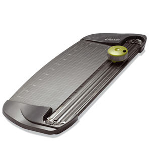Multi-Functional Personal Paper Trimmer. Trim, Wave-Cut or Score by simply turning the 'Blade-Dial' Replacement Dials available 300 mm Trim Length 5 Sheet (80gsm) Trim Capacity Metric/Inch Rules and Markings 'Safe-Trim' Blade Mechanism Replacement Dials available Including Trim, Perforate & Score option Ideal for both Home/Hobby and Personal Office use.