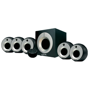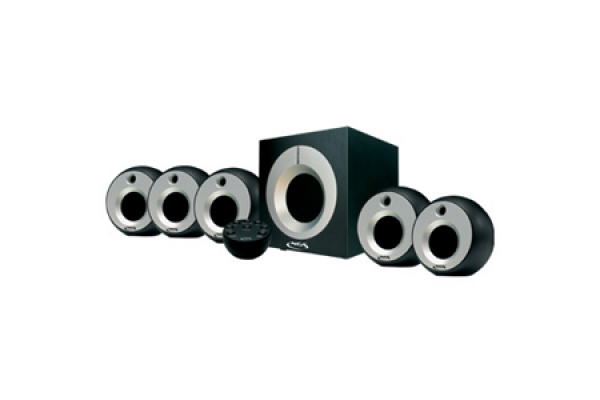 5.1 channel Sound System SUBWOOFER: Output power: 30 W RMS. Central/bass volume control. On/off button with LED. SATELLITES: Output power: 3 W RMS. Magnetically shielded. Includes remote with all controls.Prices, Promotions, Specifications, Availability and Offers may change without any notice. Pricing, typographic, or photographic errors may occur.