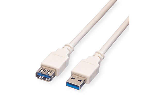 VALUE USB 3.2 Gen 1 Cable, A - A, M/F, white, 0.8 m