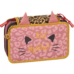 School Pencil Case 3 zips Sweet Wild Cat