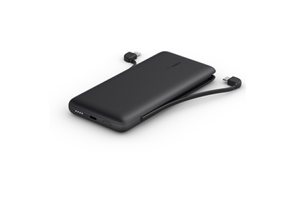 10K POWER BANK, 18W PD, With integrated cables, BLACK