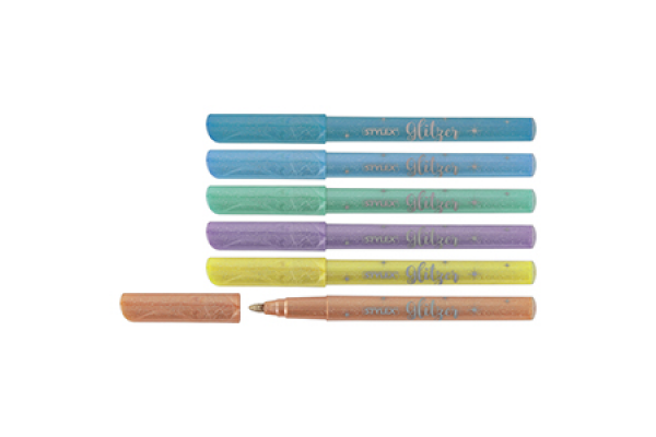 6 glitter felt tip pens, pastel