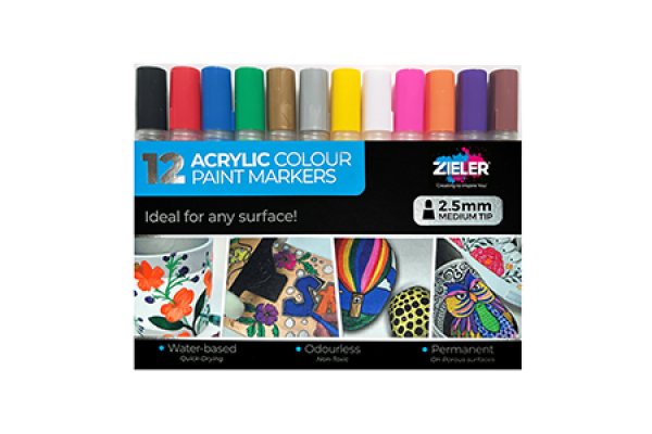 Acrylic Paint Marker Pens - 2.5mm PK.12 Bright ColoursPrices, Promotions, Specifications, Availability and Offers may change without any notice. Pricing, typographic, or photographic errors may occur.