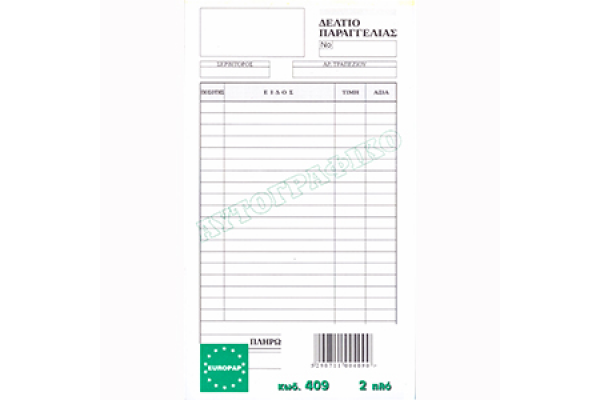 ΔΕΛΤΙΟ ΠΑΡΑΓΓΕΛΙΑΣ ΕΣΤΙΑΤΟΡΙΟΥ