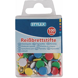 Drawing pins, metal, coloured, 100 pcs.Prices, Promotions, Specifications, Availability and Offers may change without any notice. Pricing, typographic, or photographic errors may occur.