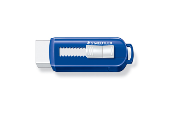 Eraser with push mechanism blue/white