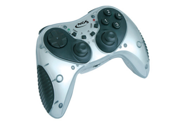 This ergonomic Game pad with wireless RF technology 2.4 GHz was developed with an inlaid motor for vibrations. Its eight direction digital D-pad allows progressive control and its analogical control permits the highest handling in your games. Turbo mode LED indicator. It has also twelve shooting buttons, a turbo function and an aiming point from Windows system. Long-lasting batteries owing to a low current consumption. Supported by Windows 98SE/Me/2K/XP.