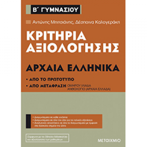 ΚΡΙΤΗΡΙΑ ΑΞΙΟΛΟΓΗΣΗΣ Β΄ ΓΥΜΝΑΣΙΟΥ ΑΡΧΑΙΑ ΕΛΛΗΝΙΚΑ (ΑΠΟ ΤΟ ΠΡΩΤΟΤΥΠΟ ΚΑΙ ΑΠΟ ΜΕΤΑΦΡΑΣΗ)Prices, Promotions, Specifications, Availability and Offers may change without any notice. Pricing, typographic, or photographic errors may occur.