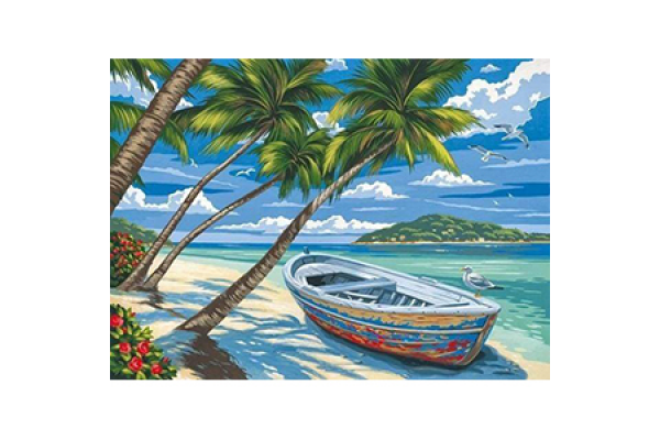 Paint by numbers Figured'Art Boat under the Coconut trees 40x50cm Without frame
