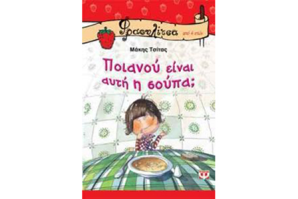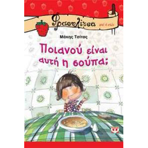 ΠΟΙΑΝΟΥ ΕΙΝΑΙ ΑΥΤΗ Η ΣΟΥΠΑ; WHOSE SOUP IS THIS? Ηλικιακή Ομάδα ΠΑΙΔΙΑ 4+ Σελίδες 40 Η Χρυσούλα βλέπει πάνω στο τραπέζι ένα πιάτο με σούπα. "Ποιανού είναι;" σκέφτεται κι ύστερα α ρχίζει να ρωτάει με τη σειρά: τη γιαγιά, τον παππού, τον μπαμπά, τη μαμά, την ξαδέρφη της, το φίλο της, τον ταχυδρόμο, τη γειτόνισσα, το σκύλο, τον παπαγάλο, τα παιχνίδια , τις κούκλες. Όμως κανένας δεν ξέρει "ποιανού είναι αυτή η σούπα". Ώσπου στο τέλος η μαμά...Prices, Promotions, Specifications, Availability and Offers may change without any notice. Pricing, typographic, or photographic errors may occur.