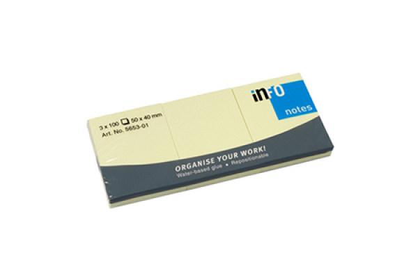 STICK NOTES 3X50X40MM YELLOW 100 sheets per pad