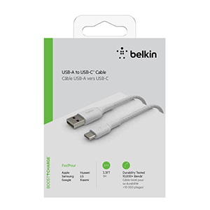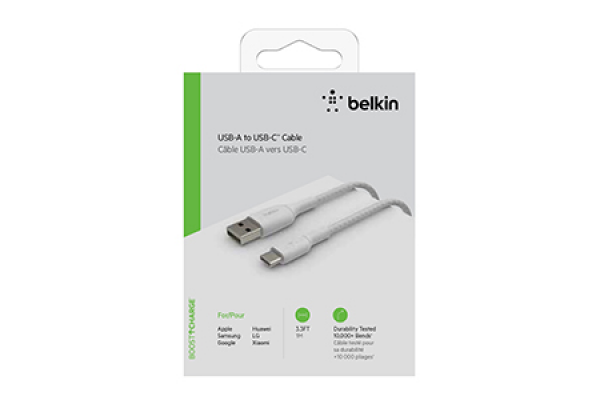 USB-A to USB-C Cable_Braided, 1M, White